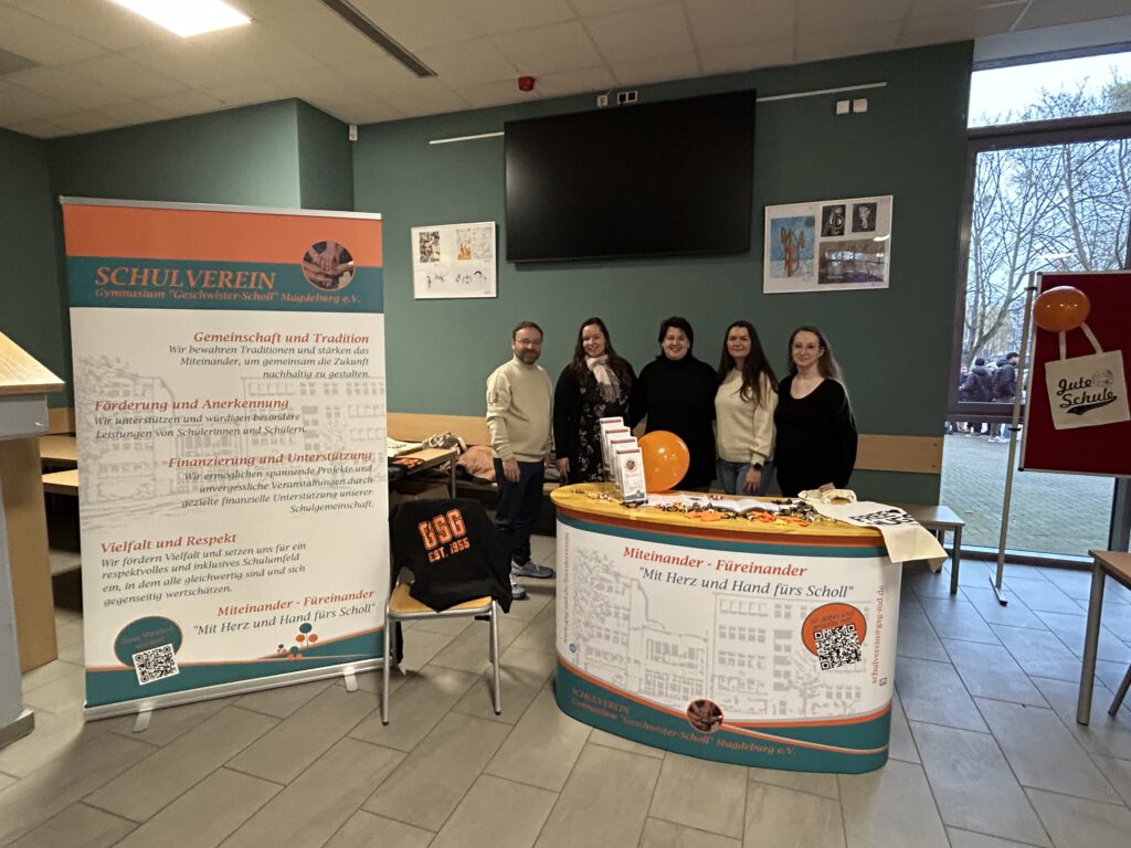 Nach dem Motto: „Miteinander Füreinander“ besetzten die Vorstände des Schulelternrates und des Schulvereins erstmalig gemeinsam den Informationsstand am Tag der offenen Tür des Geschwister Scholl Gymnasiums.